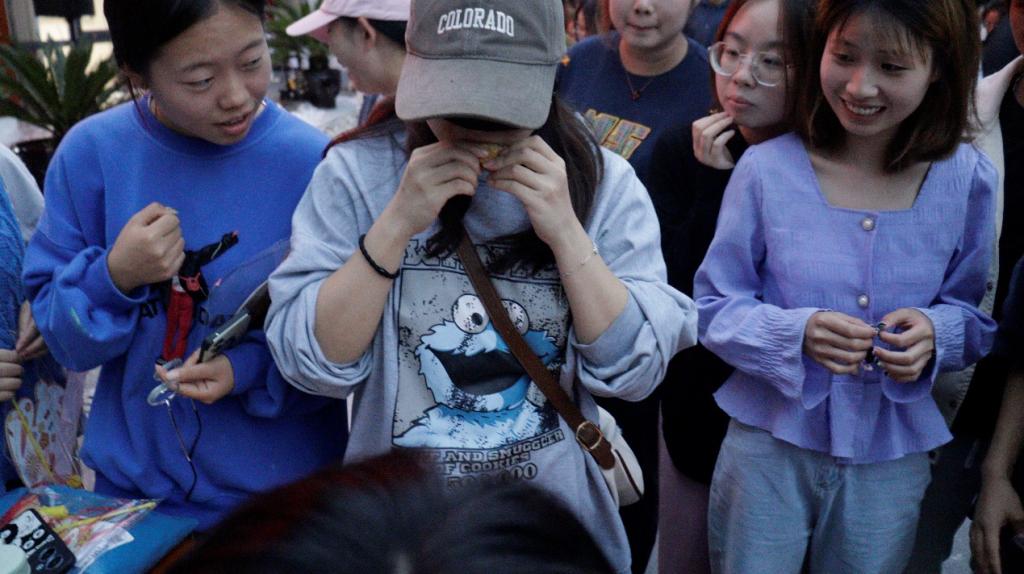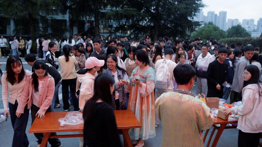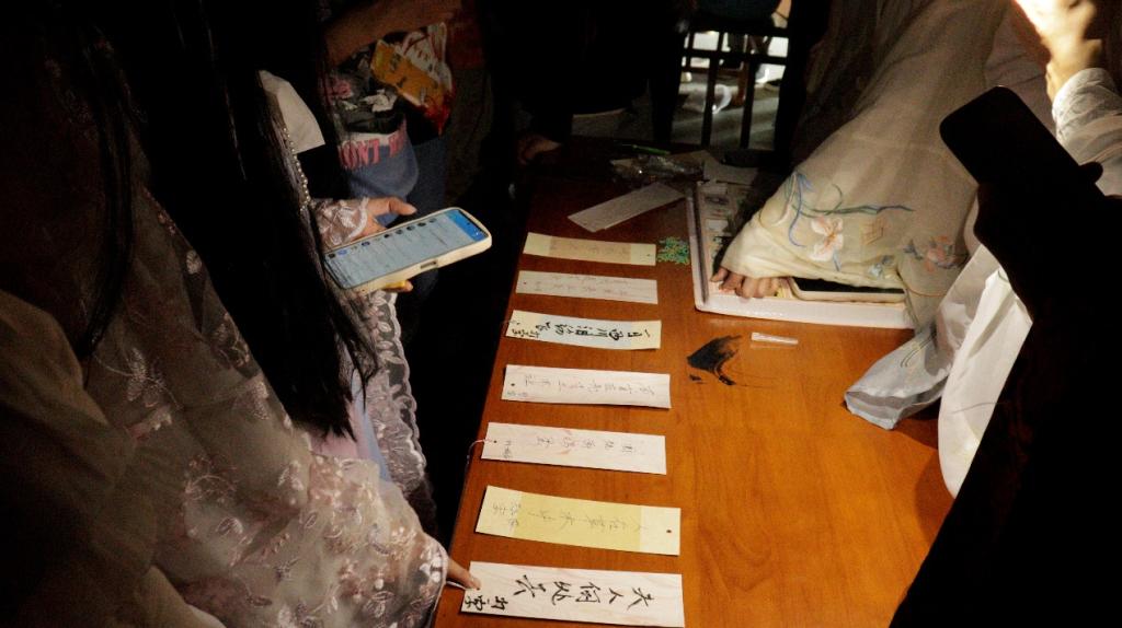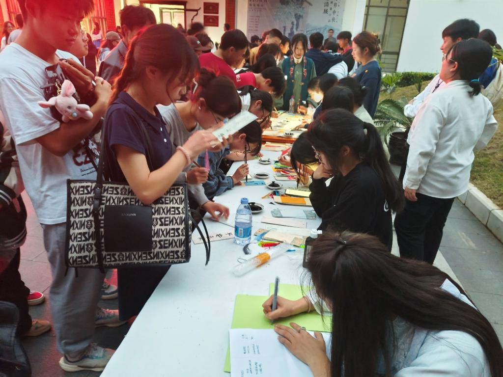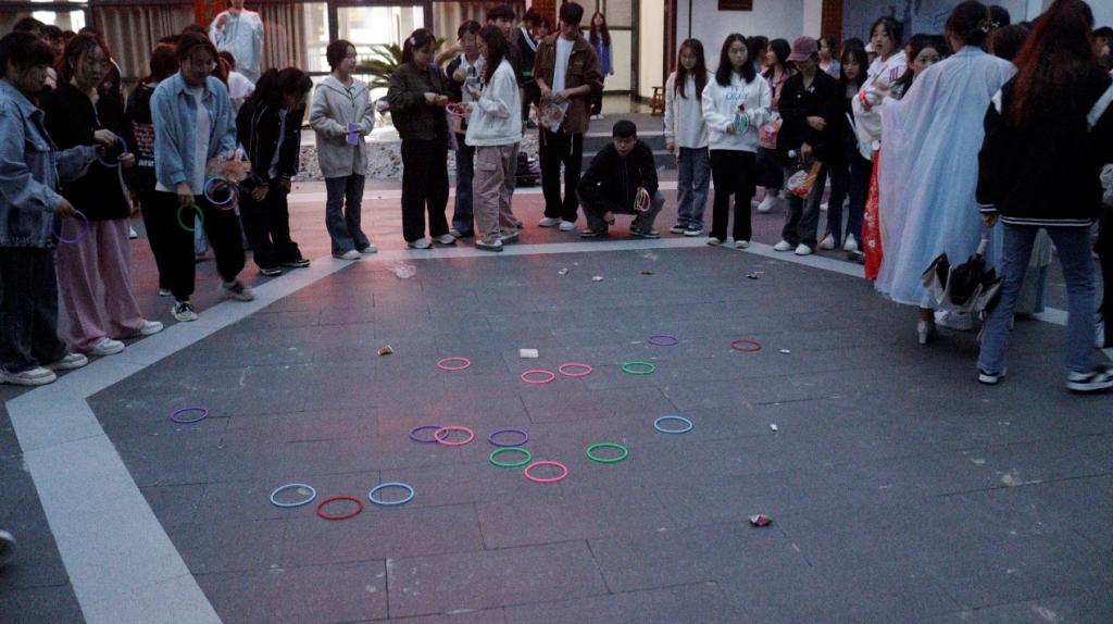 活动设置了近水楼台先得月、你画我猜、蒙眼吃月饼、猜谜语、海底捞月5个连环趣味小游戏,并为参与游戏的同学贴心准备了月饼、零食等精美礼品,同学们认认真真玩游戏,开开心心领奖品,共同感受中秋的温馨氛围。同时,现场还有5个体验活动——DIY团扇、DIY花灯、书法体验、环环相扣、汉服试穿,可供大家随意挑选体验,同学们都积极参加,跃跃欲试,欢声笑语渲染了全场,好不热闹!