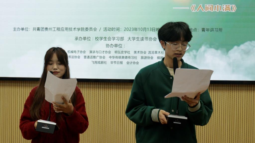 活动开始,主持人解读了本次活动的主题——经过岁月洗礼,那些平淡日常才让我们的人生更加真实和鲜活。《人间小满》中这样描述时光:时光的棱角,激荡的岁月容颜,留下的总是斑斑驳驳的一点。时光像风一样不等人,就像一个个季从不停歇。随后便有二十多位同学分享了自己的感受。
