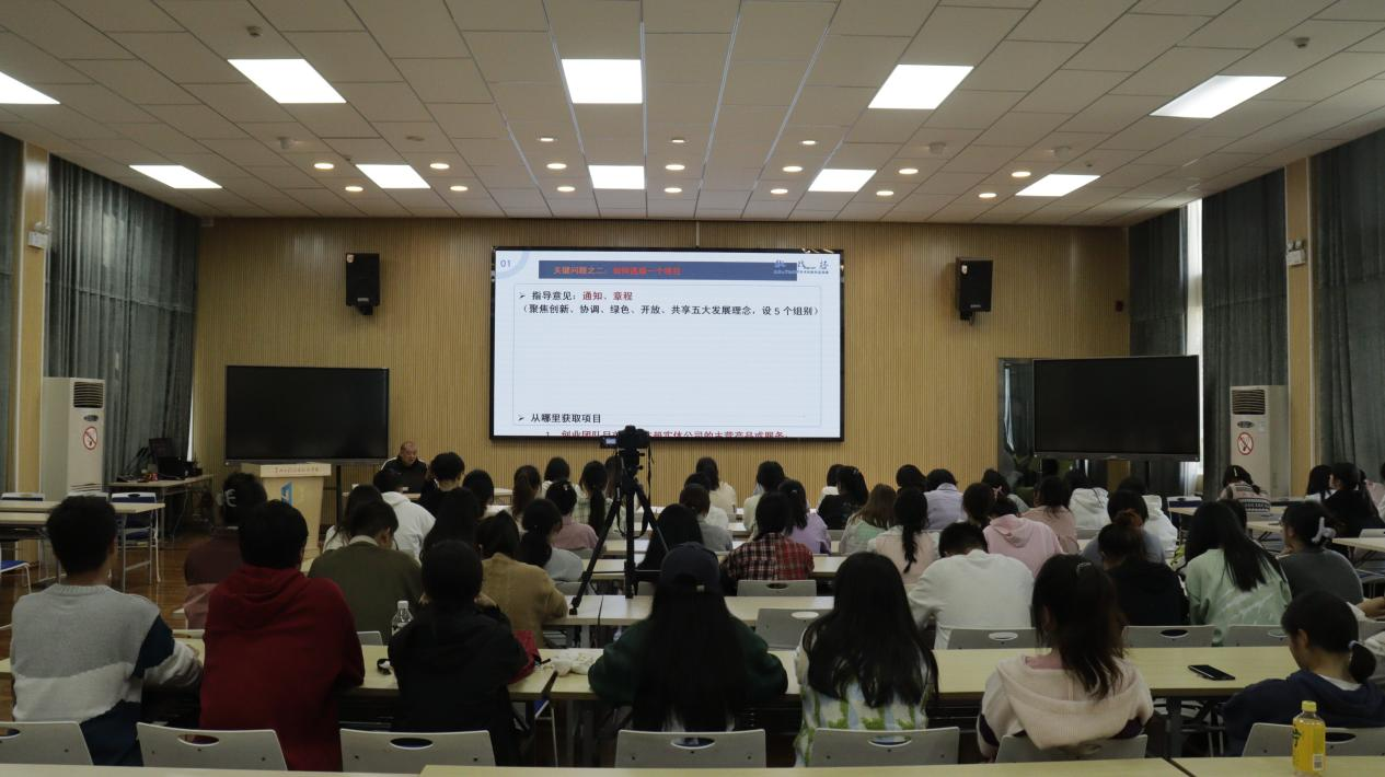 范贤广先对“挑战杯”中国大学生创业计划竞赛概况、商业计划书制作的基本构成和内容等方面作了详细的讲解。之后,他根据自身指导学生参赛的经验分享了相关技巧,并提醒大家需要注意的重要事项。最后他鼓励同学们学会坚持,积极参加“挑战杯”竞赛。