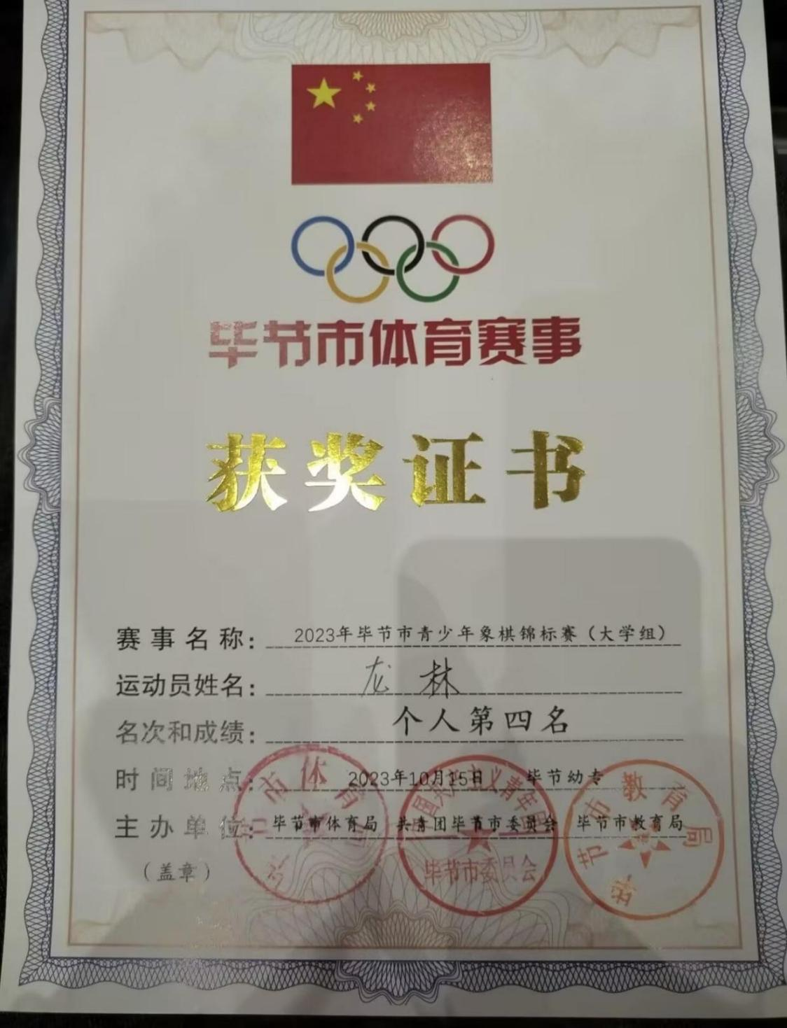 龙林获大学组个人第四名