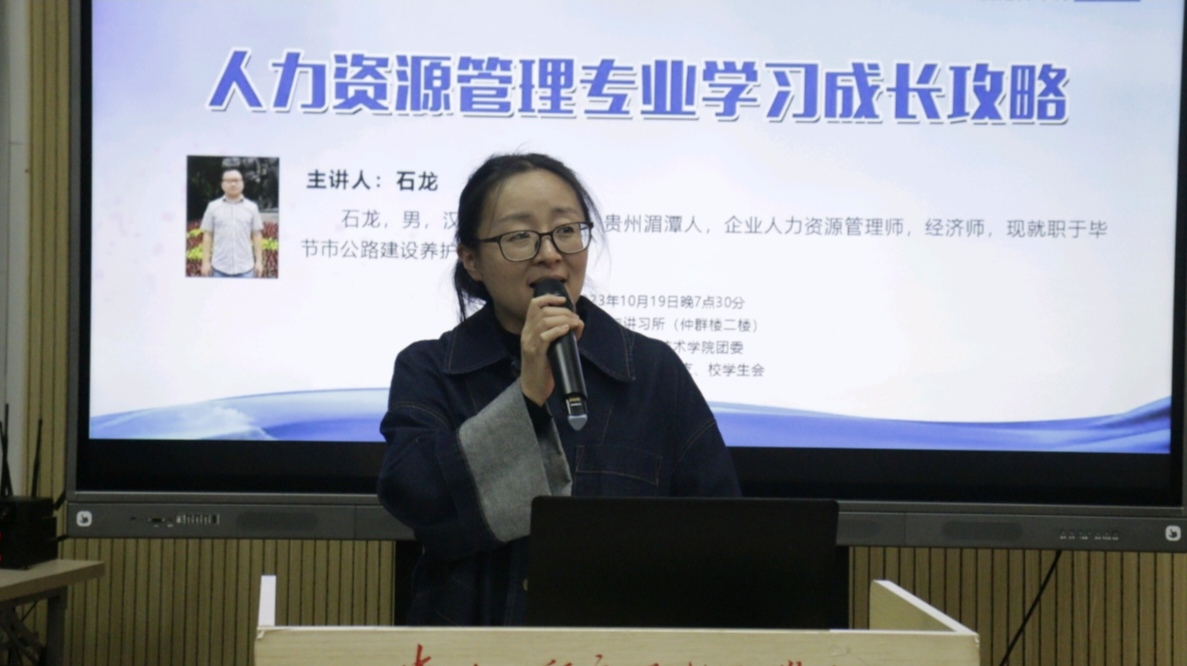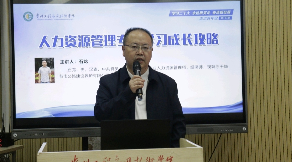2023年10月19日晚,主题为“殷殷流沧情 赤子报春辉”第167期流沧青年说在青年讲习所如期举行。此次活动特邀现就职于毕节市公路建设养护有限公司的我校2011届人力资源管理专业校友石龙担任主讲人。经管学院党总支书记张翔和团总支书记赵曼出席活动,全校90余名学生参加。