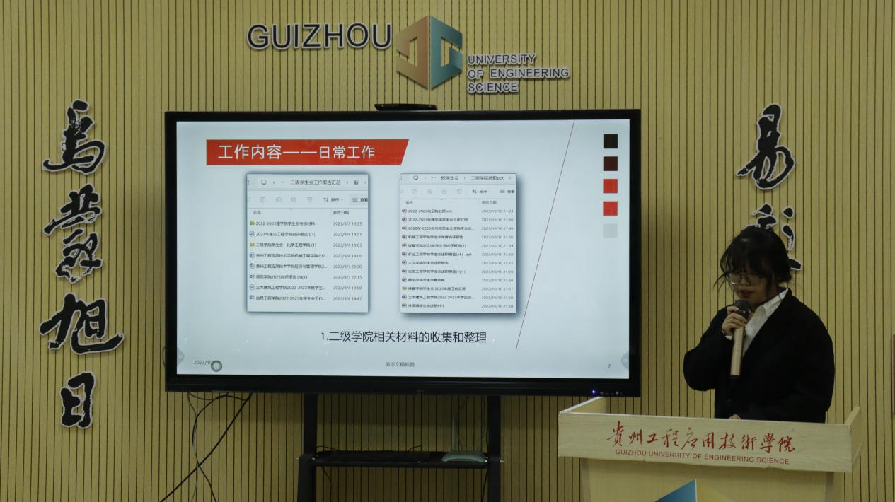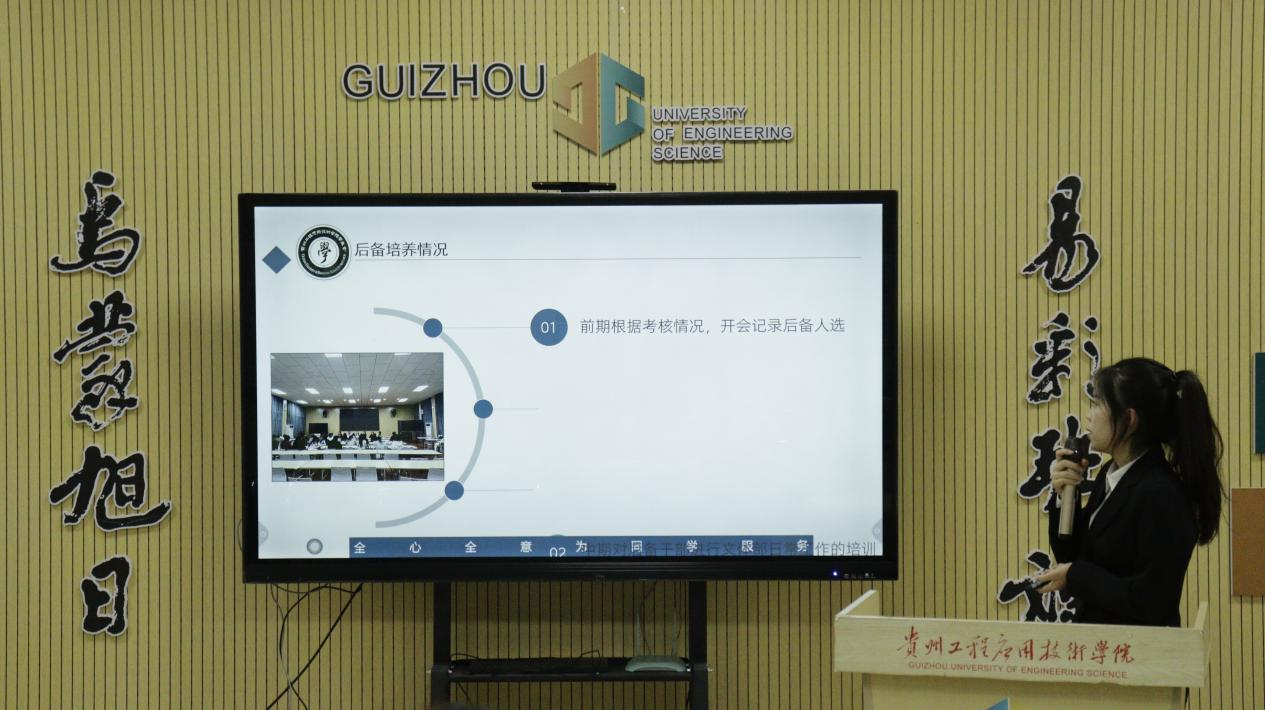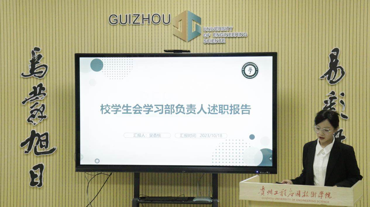 会上,校学生会主席团成员王美花、韩陈浩、任思、马钰淇、周展鹏以及6个部门负责人依次上台,围绕2022-2023学年个人思想、学习以及工作开展方面的情况进行了现场述职。