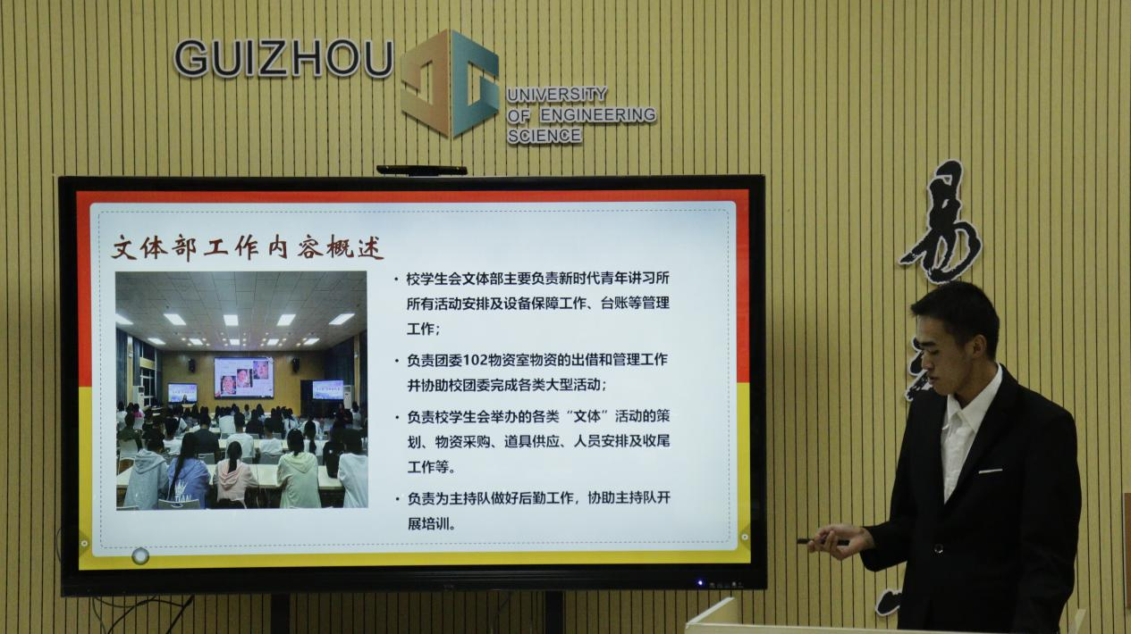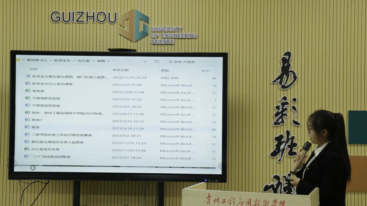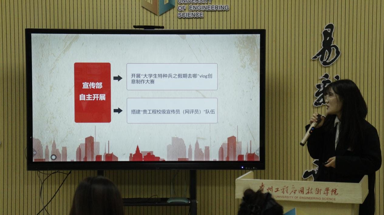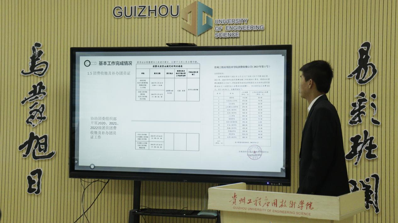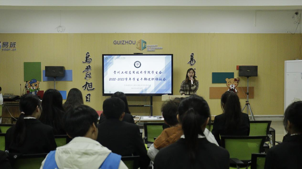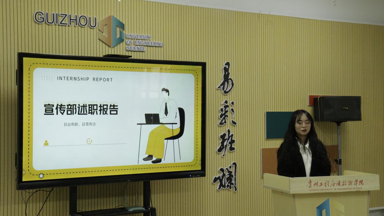 10月20日下午,校学生会在易班大讲堂顺利举行了2022-2023学年学生干部述职评议大会。校团委书记、校学生会秘书长高翩翩,校团委组织部部长、校学生会指导老师任捷,学生工作部(处)老师詹涵涵,校团委组织部干事曹倩以及学生代表共同听取了校学生会主席团成员和工作部门负责人的述职。