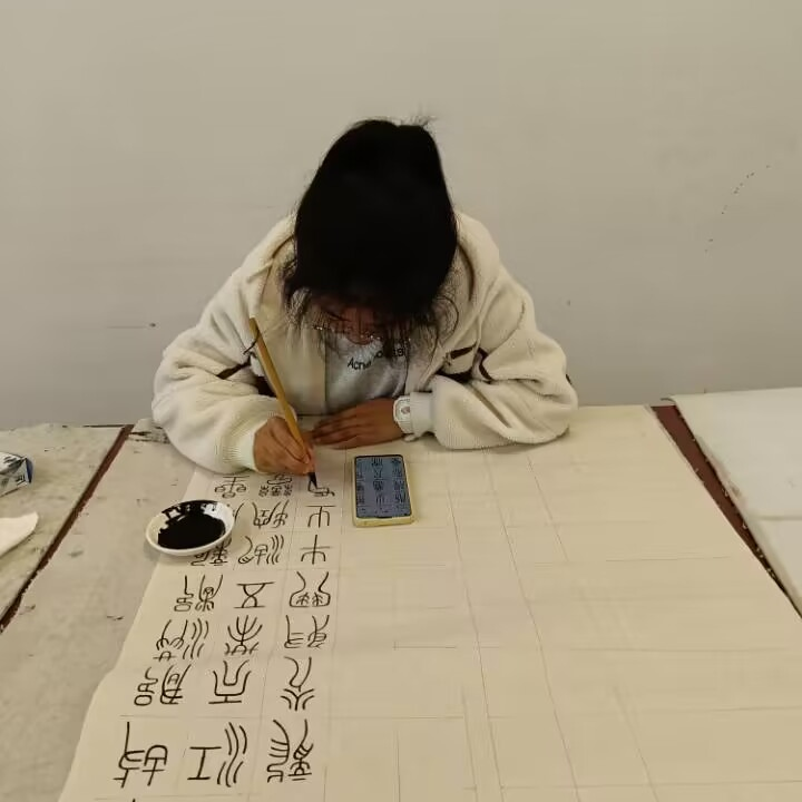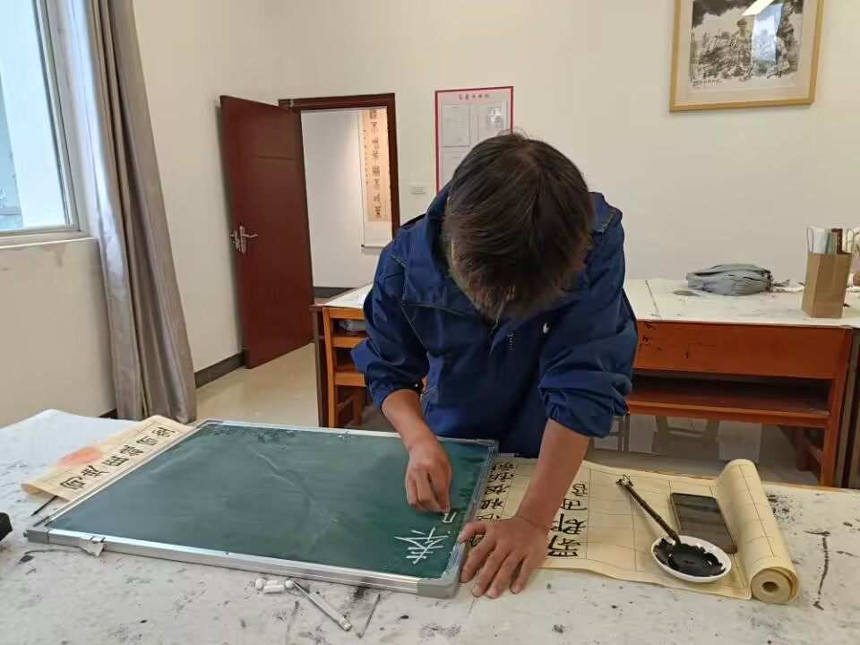 比赛现场,参赛者们纷纷挥毫泼墨,用心书写:毛笔组选手们用柔软的毛笔在宣纸上挥洒自如,展现出中国传统书法的韵味;硬笔组的选手则用现代硬笔书写,线条流畅,字迹清晰;粉笔组的选手用白色的粉笔在黑板上写出一个个强劲有力的文字,展现着文字的巨大魅力。