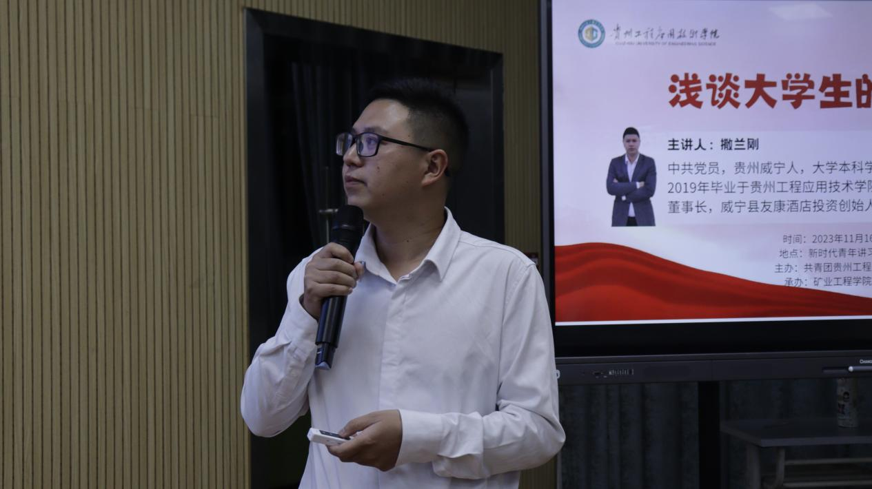 2023年11月16日,主题为“浅谈大学生的就业与创业”的第171期流沧青年说在青年讲习所如期举行。此次活动特邀东莞龙飞人力有限公司董事长、威宁县友康酒店投资创始人、威宁欧派零售大家居总经理、创新创业讲师撒兰刚担任主讲人,全校约120余名学生参加。