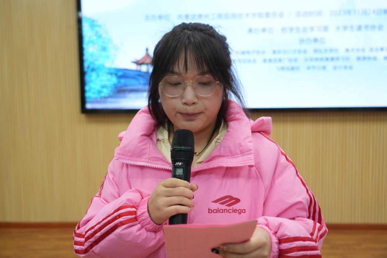 分享会上,主持人领学习近平总书记的经典语录,以“当代中国青年是与新时代同向同行,共同前进的一代。生逢盛世,肩负责任”引出本次活动主题。随后20余名同学分享自己的学习感悟。
