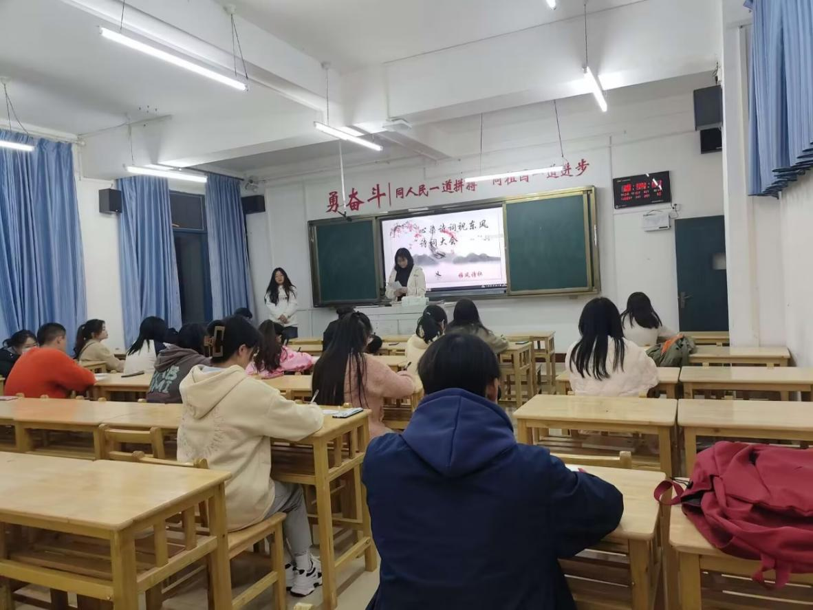 人生最美好的事情莫过于拥有诗和远方,远方在脚下,诗歌在身边。11月25日,贵工程雅风诗社在启智楼成功举办了以“心染诗词祝东风”为主题的诗词大会决赛。本次诗词大会吸引全校约430余名同学报名参赛。