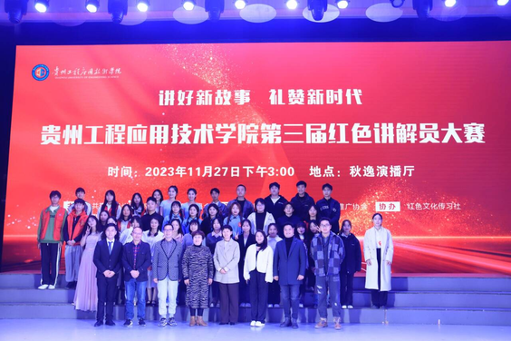 为了加强学生对红色文化的生动理解,体会革命先烈的精神,传承红色基因,由贵州工程应用技术学院团委和教务处主办,师范学院团总支、普通话推广协会承办,红色文化传习社协办的第三届红色讲解员大赛经过两个多月的初赛选拔和指导,于2023年11月27日下午在秋逸演播厅举行。全校有600余名观众到场观看。