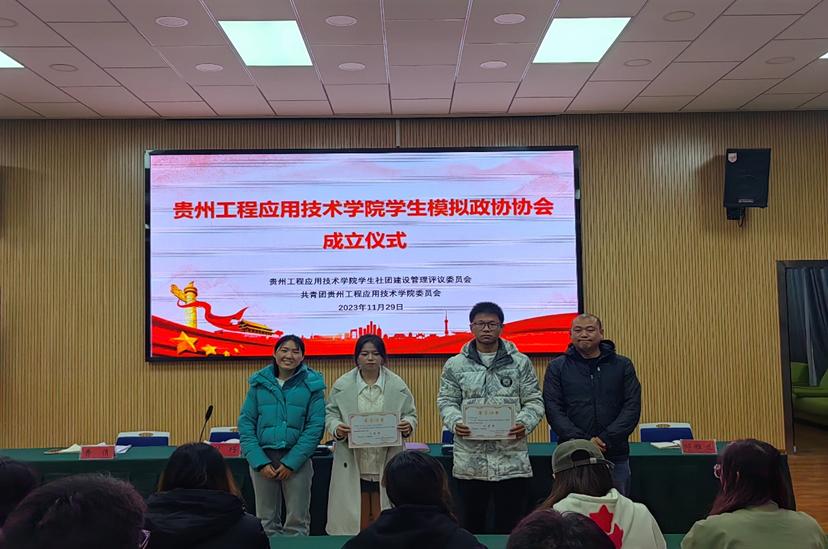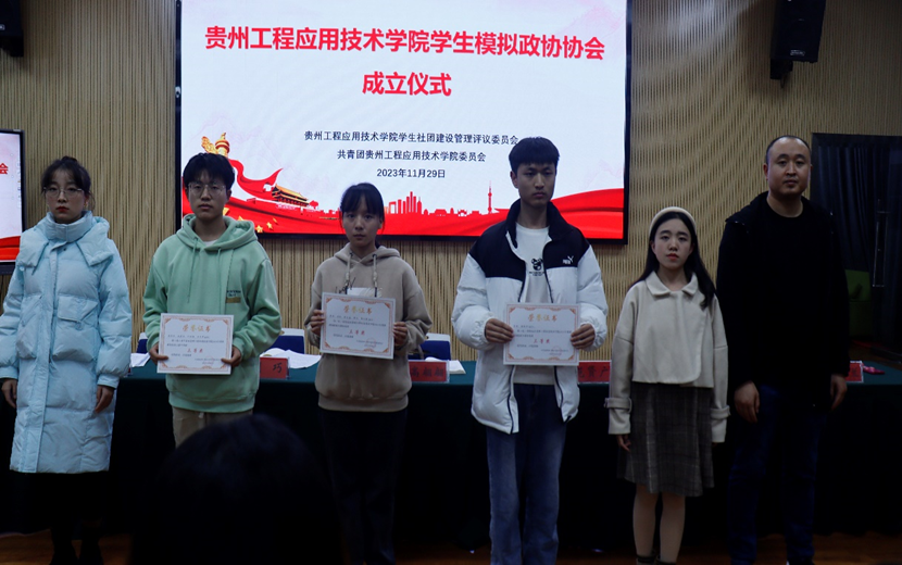 接着,校团委社团管理部部长范贤广宣读关于同意贵州工程应用技术学院学生模拟政协协会成立的批复以及聘任指导教师的决定,同时公布2023年校级模拟政协提案大赛获奖名单,校团委老师依次为获奖选手颁奖。