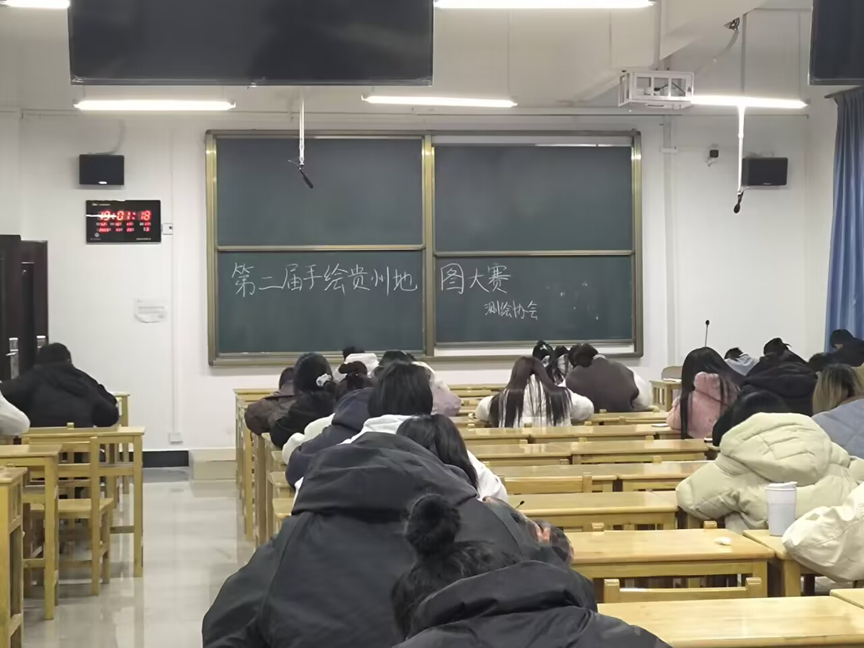 2023年11月29日晚,贵工程测绘协会在绣山实验楼A503和A504举办第二届手绘贵州地图大赛。本次活动共150余人参加。