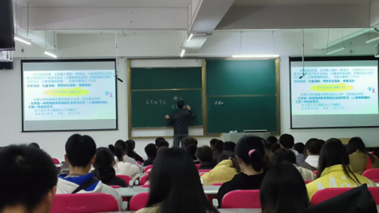 教室里,郑杰与同学们以此次活动为交流平台,共同探讨文学的性质,营造了良好的学习氛围。