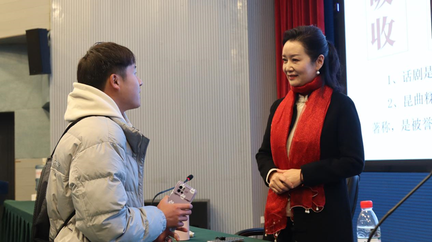 正如习近平总书记所说:“传统优秀文化艺术是一个国家、一个民族传承和发展的根本,如果丢掉了,就割断了精神命脉。”廖琪瑛以《牡丹亭》为例讲解越剧创新的重要性和具体路径。她表示,多积极开展越剧进校园活动,能在活态传承中绽放戏曲之美,把越剧传承“种子”撒播到学生心中。