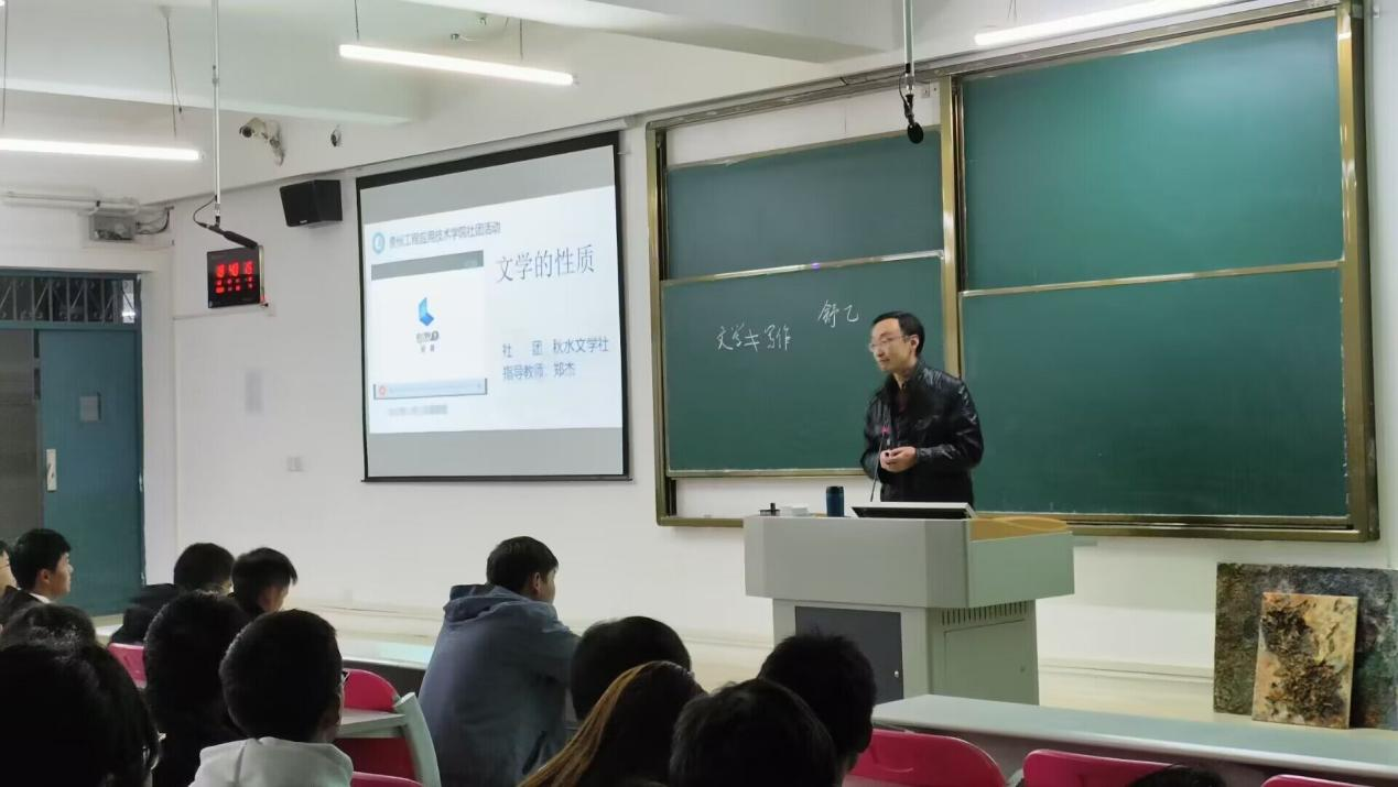 为了丰富社员的课余生活,提高社员的文学艺术修养以及综合能力,秋水文学社开展了专题讲座,为同学们拓展了视野,开阔了思维、培养了同学们对文学的学习兴趣,产生了较为积极的影响。