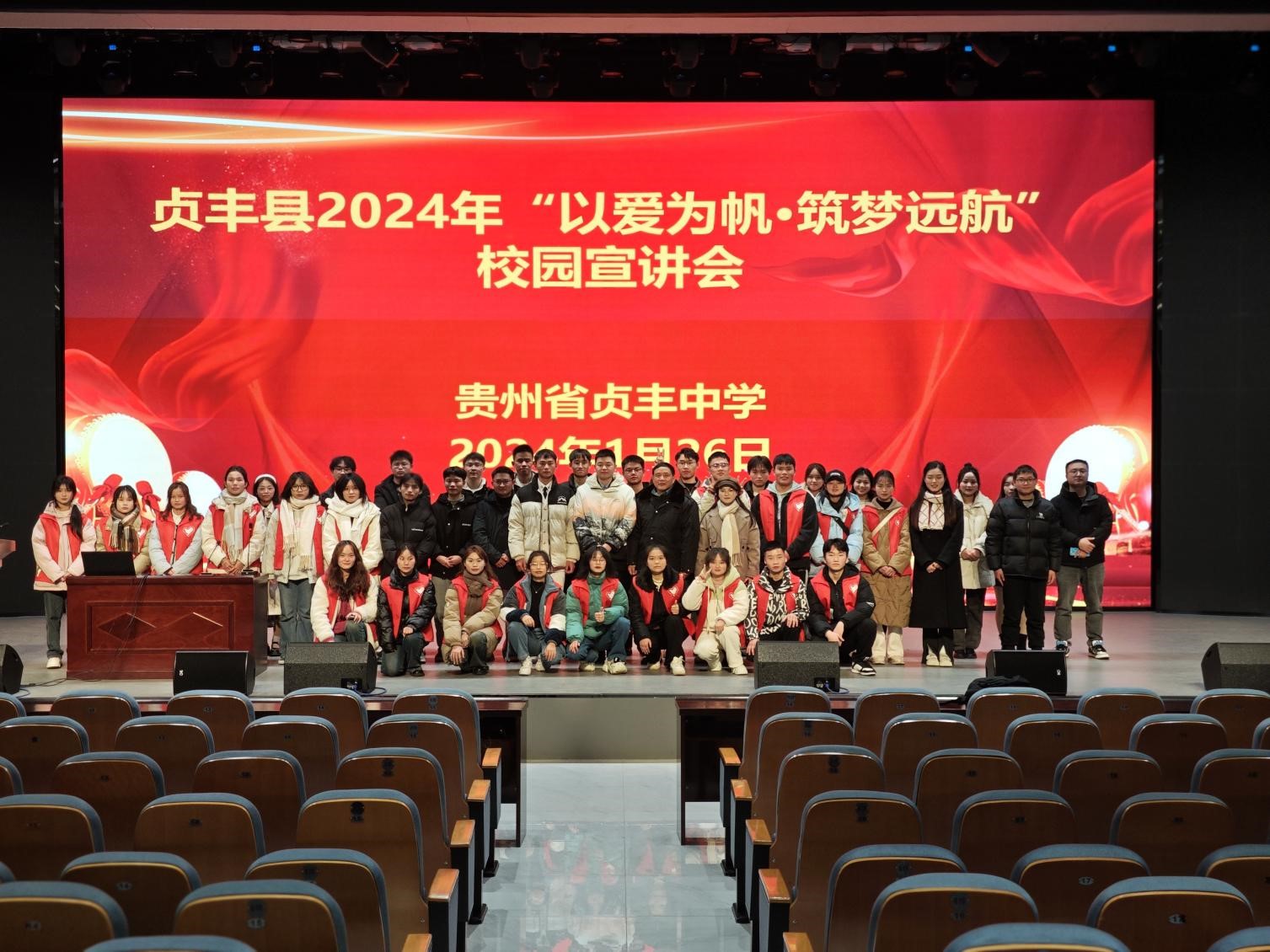 宣讲结束后,大学生志愿者们与贞丰中学的学子们合影留念。学子们纷纷表示通过这次宣讲活动,他们更加明确了未来的目标,对大学生活和高考备考有了更清晰的认识。与此同时,张孝顺不由感叹道:“回到母校,我感到格外亲切。通此次宣讲活动,是包括我在内的所有志愿者用实际行动践行“回馈家乡、服务社会”的理念,我会继续努力,希冀为贞丰中学的学子们点燃一抹梦想之光。”