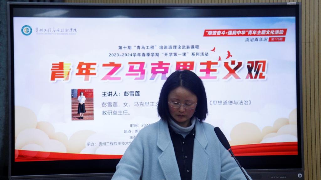 2024年2月28日,贵州工程应用技术学院“开学第一课”活动暨第十期“青马工程”培训班理论武装课程第一次理论辅导培训在新时代青年讲习所顺利举行。