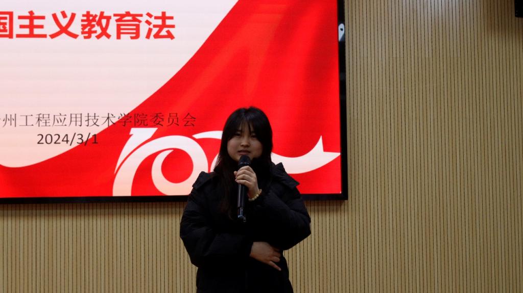 最后一位同学说道:“《中华人民共和国爱国主义教育法》的出台让爱国主义精神不再是喊口号,不仅仅是一种情怀,更是一种责任和使命。爱国立法,是一场弘扬民族精神与法治建设的双重奏。”