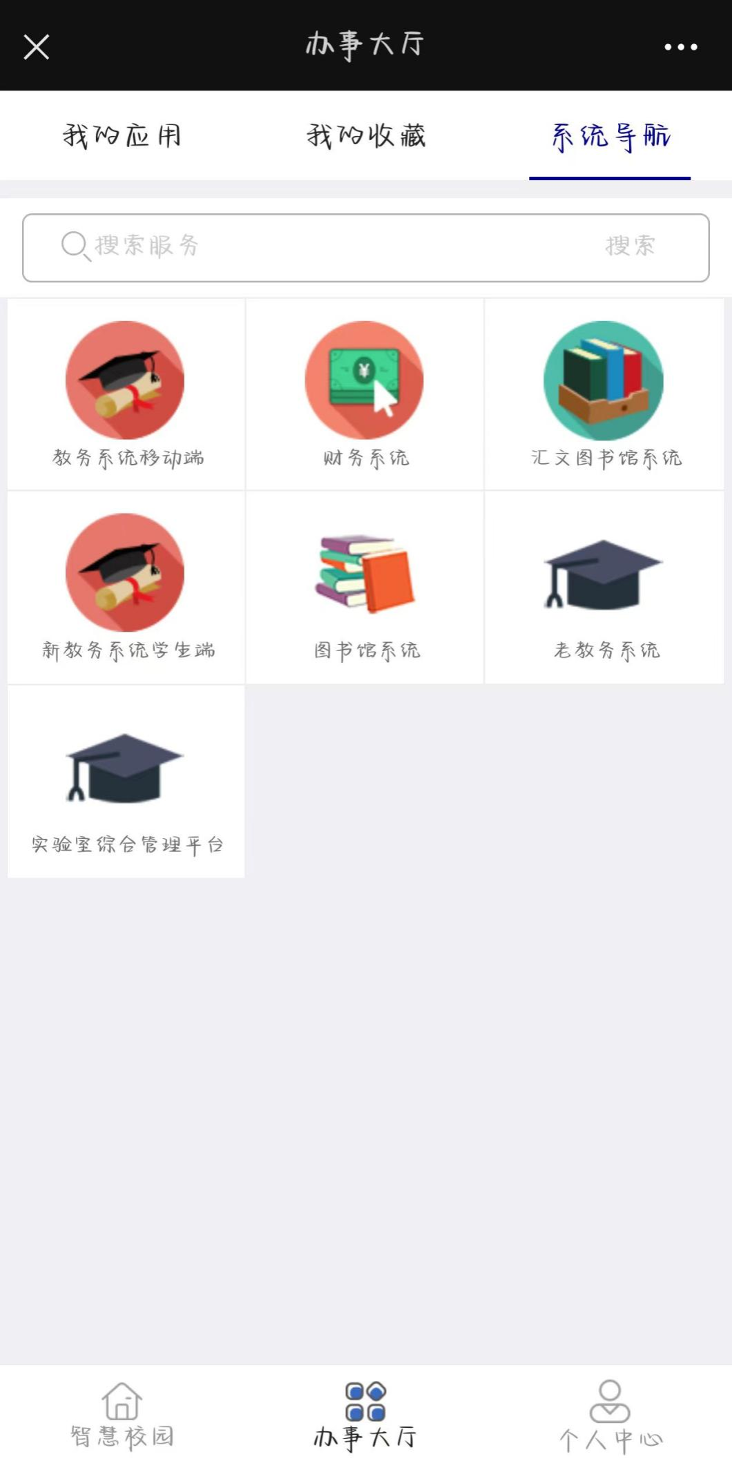 具体步骤:关注“贵州工程应用技术学院”公众号-点击智慧校园-服务大厅-点击系统导航-新教务系统学生端(汇文图书馆系统),即可查看个人信息(图书馆目录检索系统)