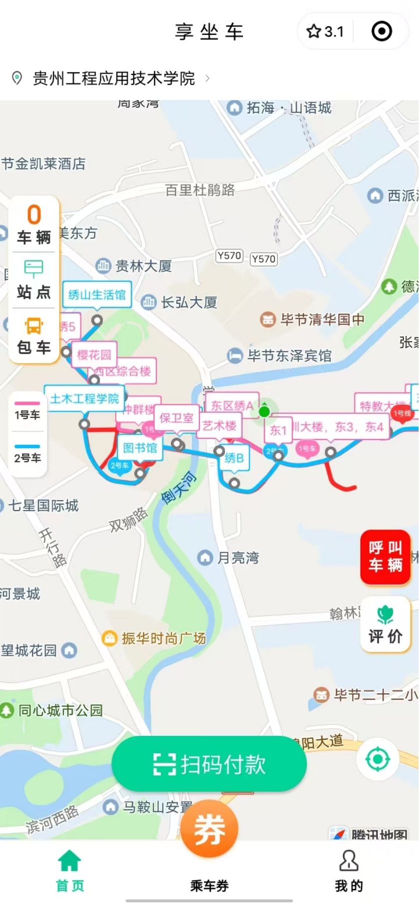 校园公交车:微信小程序享坐车-登录-呼叫车辆