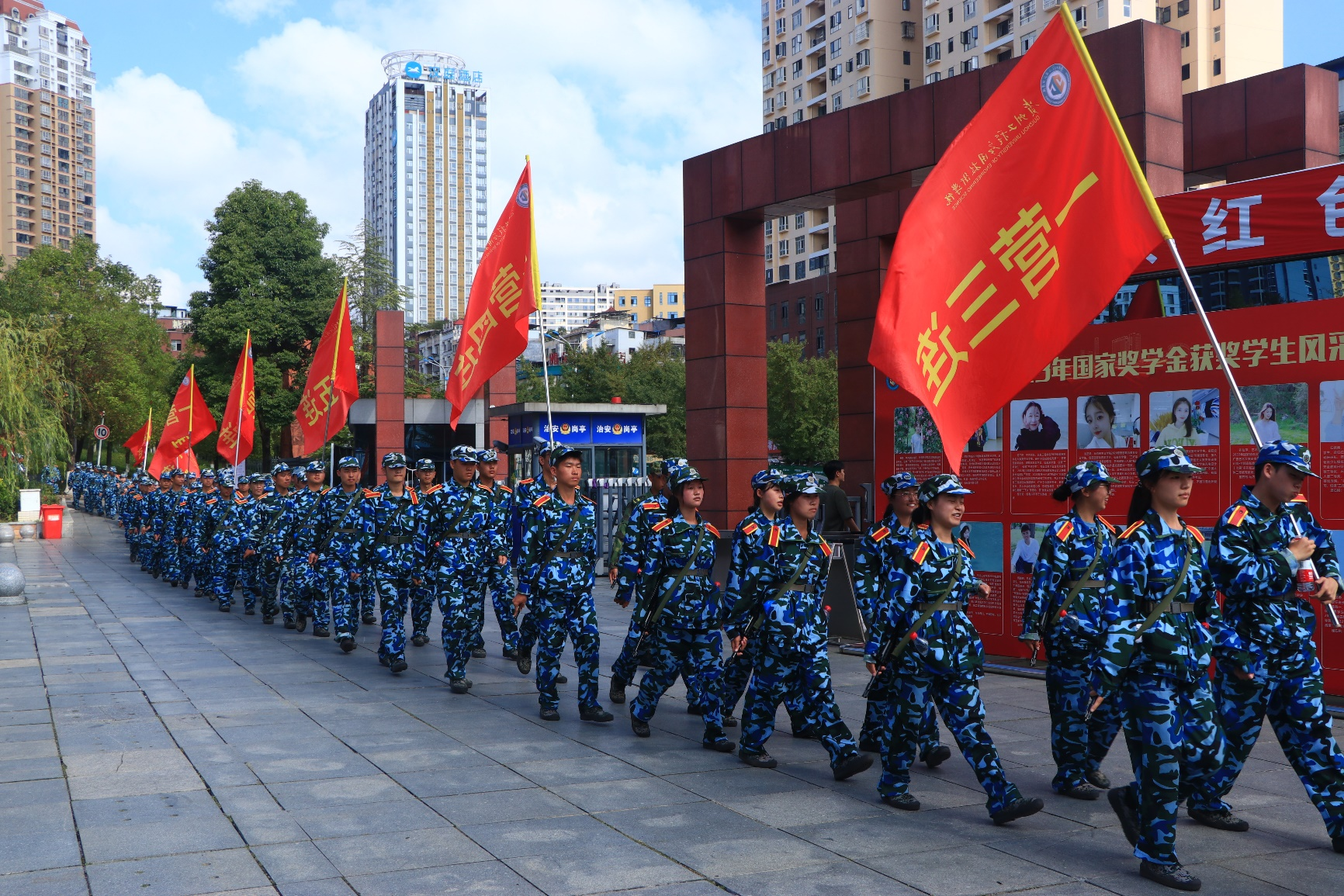 行军拉练砺青春,锤炼意志铸国防。随后,近3000名2024级同学在绣山田径场集结,整队肃立,环绕学校开始了10公里的国防拉练活动。拉练之旅开始前,新生们“关心国防,热爱国防,建设国防,保卫国防!勿忘国耻,以青春之我捍卫盛世中华!”铮铮誓言响彻云霄、磅礴激荡,提振了贵工程青年的信心,坚定了拉练的步伐。此次拉练特别设置了隐蔽、伤员拯救、探索前进等军事训练项目,在拉练过程中,同学们士气高昂,队伍井然有序,他们统一着装,展现出良好的精神风貌,一路上,同学们互相加油鼓励,共同面对挑战。每一次脚步的落下,都是对意志的一次磨砺,每一段路程的前进,都是对信念的一次坚定。10公里的国防拉练,贵工程学子用脚步丈量意志,用汗水浇灌成长。贵工程学子将永远听党话跟党走,立报国强国大志向,做挺膺担当奋斗者。