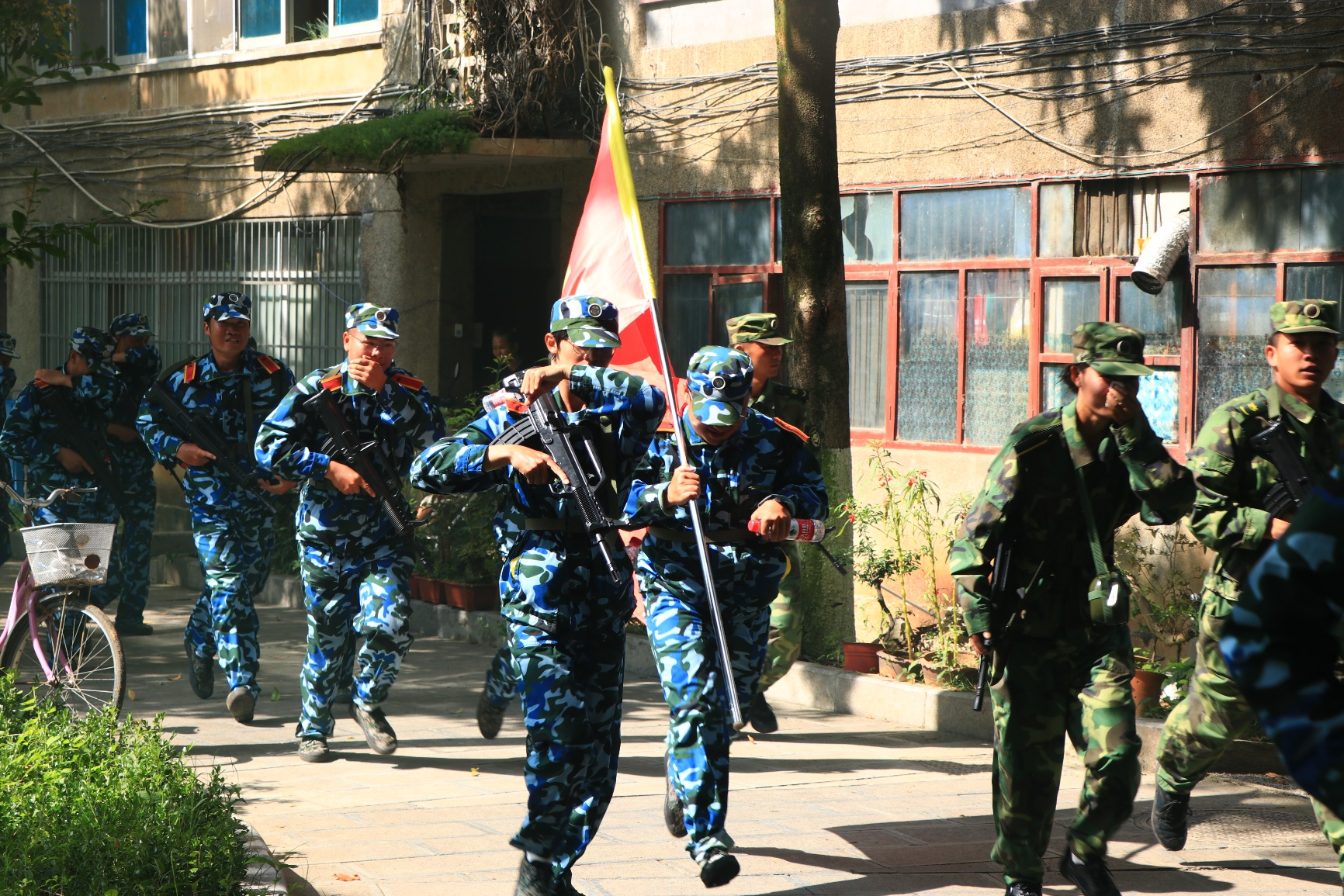 学生和教官准备出发拉练