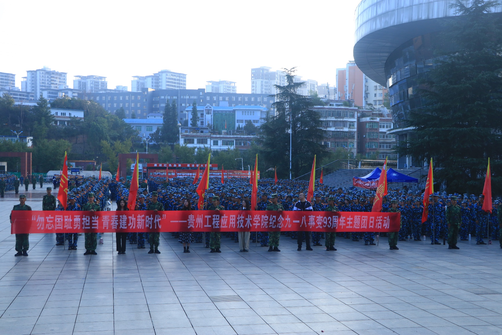 9月18日上午,我校于明德广场举行纪念“九一八事变”93周年国防教育升旗仪式暨主题团日活动。2024级全体同学,学校学生处党支部,工会、团委党支部党员教师以及学校武装部相关老师参加本次活动。学校国旗护卫队执行本次升旗任务。