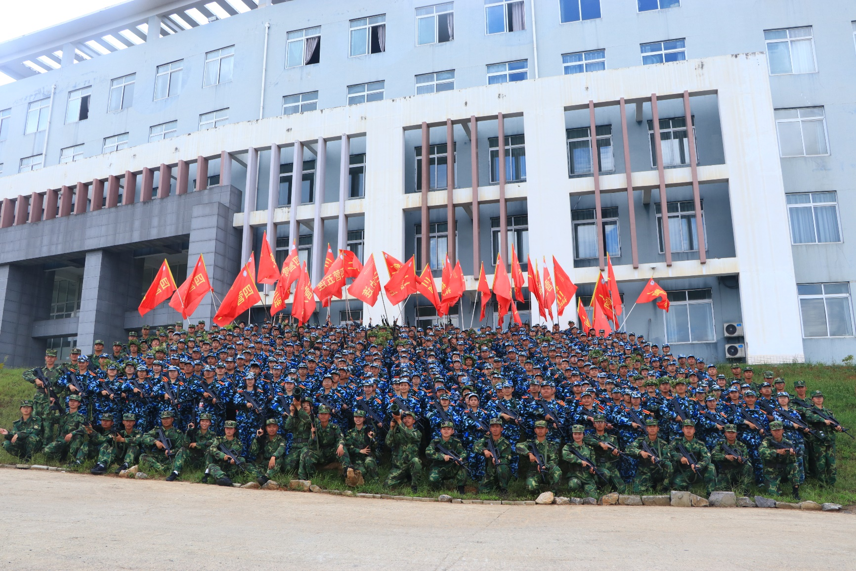 拉练的同学和教官合影