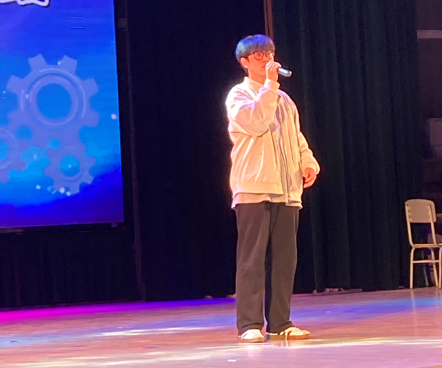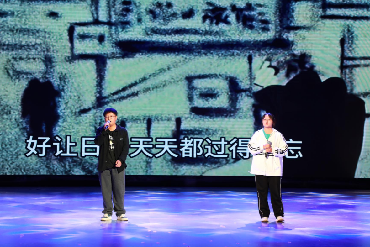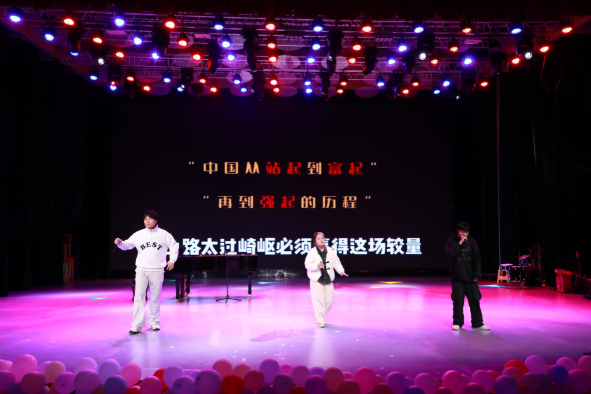 舞台中央,经济与管理学院教师雷钰迪独奏钢琴曲《月半小夜曲》。琴声如月光洒满会场,唤醒了沉睡的诗意。随后的说唱《我的祖国2024》激昂响起,动感十足,如同新时代的脉搏,跳动在每个年轻的心房。