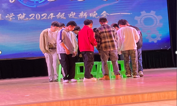 晚会还设置了“猜谜语”、“抢凳子”等游戏互动环节,吸引现场观众积极参与,既加深了新生们彼此间的了解,也增添了晚会的趣味性。