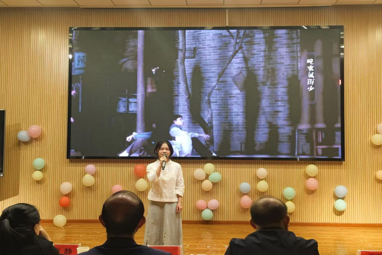 随后,各支参赛队伍依次上台,用才艺展现自我,用热情点燃青春,书写属于自己的精彩篇章,为校园文化注入新的活力与内涵。一支活力四射的舞蹈《快乐男孩女孩》为比赛拉开序幕,她们用欢快的音乐和动人的舞姿点燃了现场气氛;朗诵《青春中国》,让现场的同学感受到青年学子对祖国的热爱,令人不禁心潮澎湃;相声《结巴论》凭借幽默的语言和演员们出色的表演,引得台下笑声不断;朗诵加手语表演《月光下的中国》让同学们感受到内心的宁静与祥和,带大家走进静谧而美好的夜晚;演唱《繁花》余音绕梁,为本次比赛画下圆满句号。