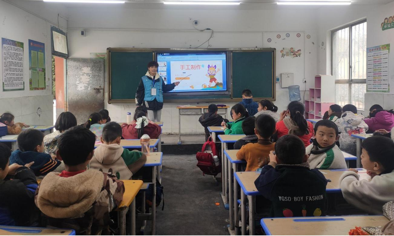 支教前,志愿者们根据草堤小学各年级学生的认知水平与兴趣爱好等实际情况,精心设计了涵盖英语、语文、美术等多个学科的多样化课程。课堂上,志愿者们摒弃了传统的填鸭式教学,转而采用生动有趣的授课方式,巧妙地将理论知识与游戏互动相结合,成功激发了孩子们的学习热情,让课堂氛围变得格外活跃。