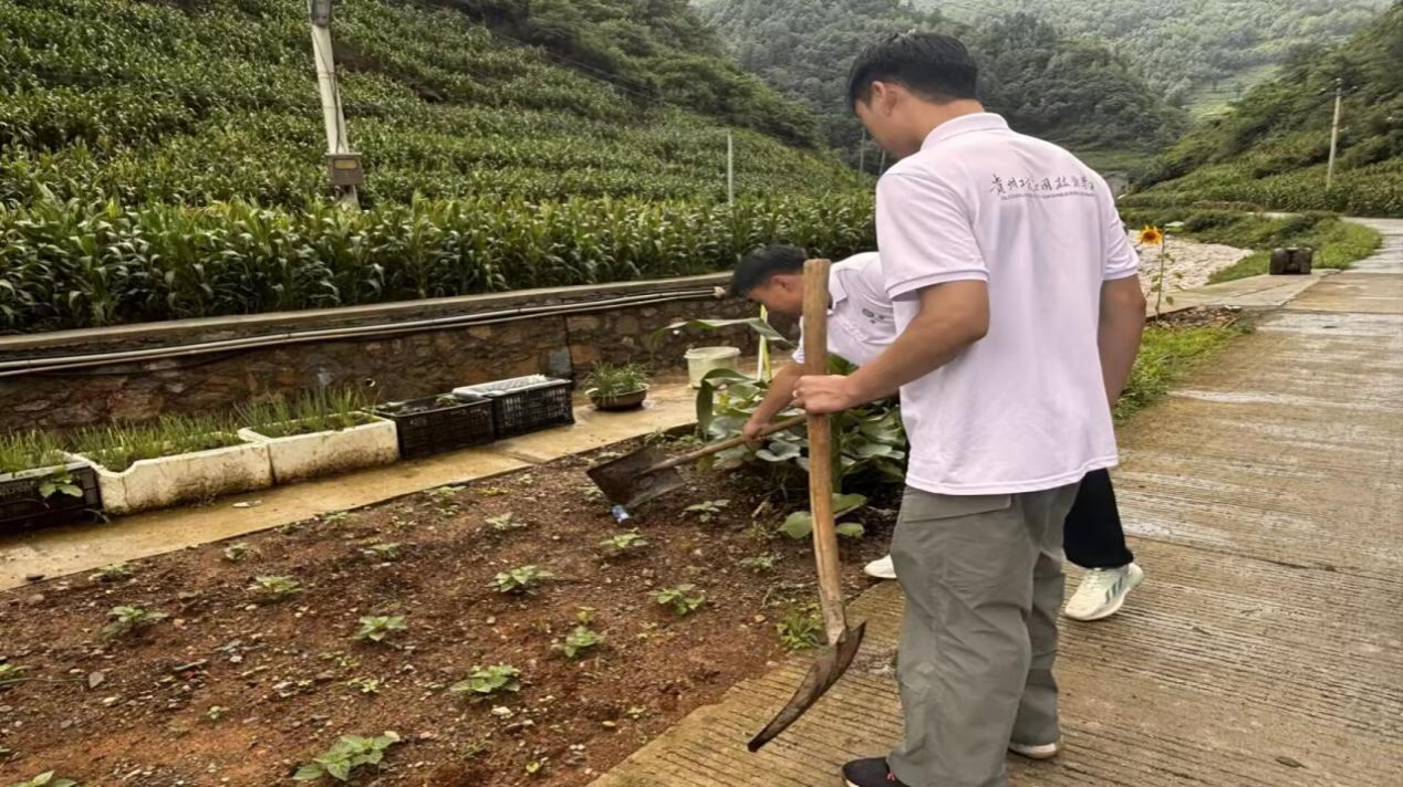 志愿者们在村公所集合后,有的走在街道上,手拿工具,先将垃圾清扫出来;有的仔细地翻整着土地,对菜园进行精心打理……志愿者们尽管脸上满是汗珠,衣服也被汗水浸湿,但脸上依旧充满笑容,朝气蓬勃,路过的村民都纷纷竖起大拇指。