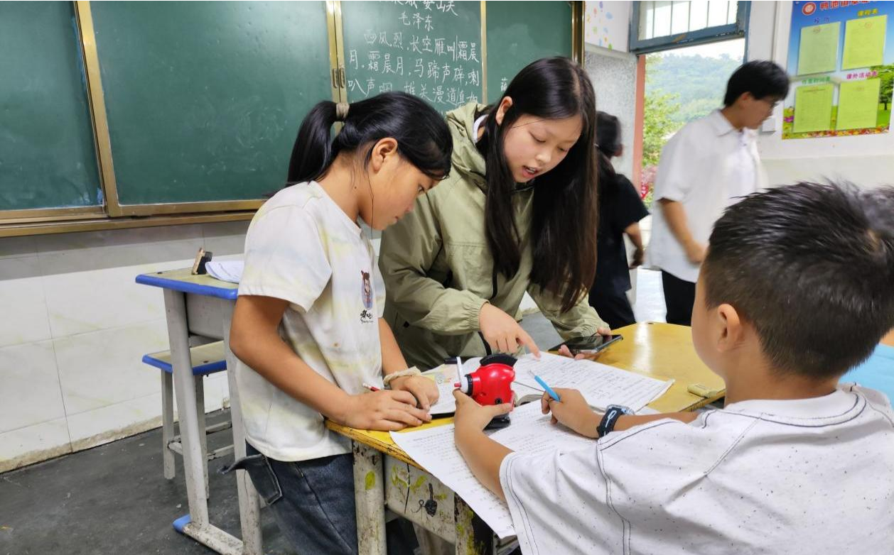 近日,贵工程马克思主义学院暑期“三下乡”志愿服务二队10名志愿者于鸭池镇草堤小学开展了一场“知识种子种心间”的主题活动。志愿者们教小朋友们朗诵红色篇目、辅导课后作业,在乡村儿童心中播撒了红色火种与知识希望,助力乡村儿童学业成长。