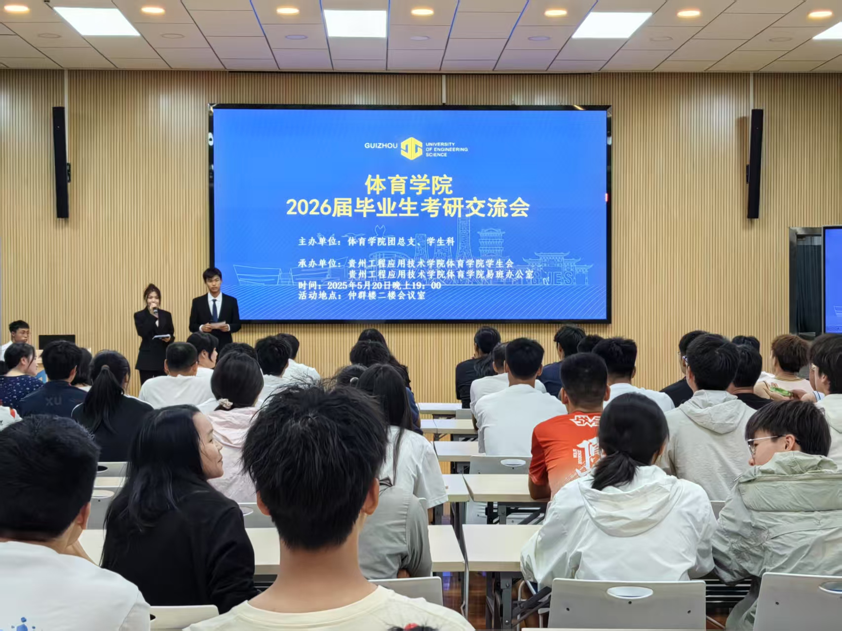 为切实提升学生考研竞争力,助力学生科学规划备考硕士研究生,2025年5月20日晚上,我院在仲群楼二楼会议室举办考研交流会。本次会议特别邀请了以下10位嘉宾分享考研经验及心得,分别是:上海体育大学博士后、硕士生导师彭春兰老师,我校体育学院教师周晓龙博士,我校体育学院瞿益超老师,上海体育大学24级4名在读硕士研究生,我院2025年3名考研上岸毕业生。会议吸引了众多怀揣考研梦想的学生踊跃参与,现场座无虚席。