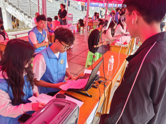 志愿者为新生办理报到手续