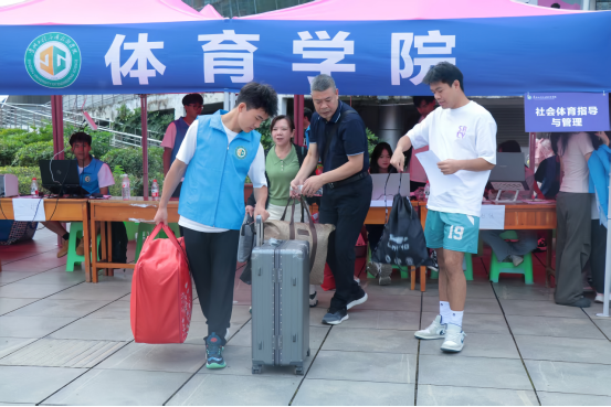 迎新现场,学院还精心设置了咨询服务台、专业介绍区和家长休息区。学院的志愿者们一边搬运行李,一边详细介绍师资配备、课程开设、校园风景、运动设施等,鼓励新生们尽快适应大学生活,以积极的心态投入到未来的学习与训练中。