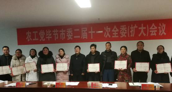 近日,在毕节市同兴大厦308召开“农工党毕节市委二届十一次全委(扩大)会议”,贵州工程应用技术学院农工党支部(简称贵工程农工支部)主委彭双艳、优秀党员吴雪瑞参加了会议。会议传达了庆祝改革开放40周年大会、习近平对试验区工作作出重要指示等系列会议和文件精神,表彰了2018年农工党基层组织“达标争优”活动先进集体、先进个人。2018年,农工党省委在全省范围内开展了主题为“人人为发展出份力,人人心中有组织”的基层组织“达标争优”活动,激励全省广大基层组织努力从组织建设、参政议政、宣传工作、社会服务等方面争创佳绩。在本次活动中,贵工程农工支部荣获“优秀支部”荣誉称号受到农工党贵州省委表彰;汤春燕获得“先进个人”荣誉称号受到农工党贵州省委表彰;吴雪瑞获参政议政“先进个人”荣誉称号受到农工党毕节市委表彰;郑杰获社会服务工作“先进个人”荣誉称号受到农工党毕节市委表彰。