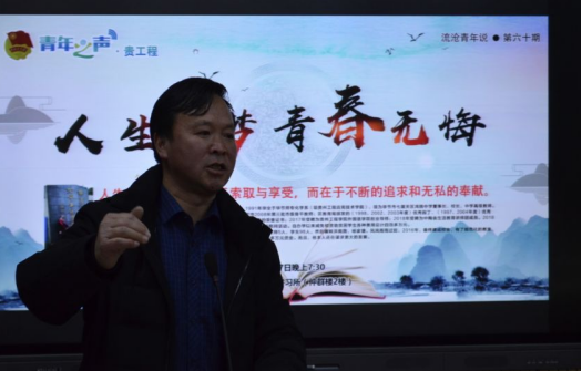 2019年3月7日,由我院承办的流沧“青年说”于19点30分在青年讲习所开讲。本期流沧青年说的主题为“人生有梦、青春无悔”,主讲人为优秀毕业校友吴必果先生,吴必果先生系七星关区鸿鹄中学董事长、校长,外国语学院150余名师生代表参加。