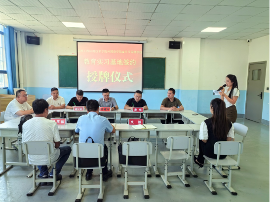 随后,外国语学院院长胡荣华与毕节国琳学校校长徐建军签署了教育实习基地协议,并由胡荣华院长为毕节国琳学校授牌。这标志着双方合作的正式启动,也预示着未来双方交流与合作的开始。