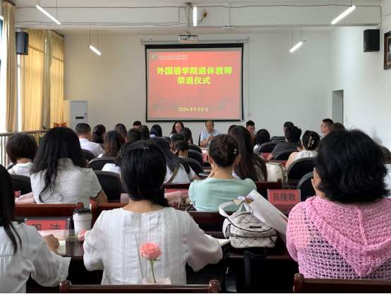 在教师节这个特殊的日子里,外国语学院特别为2024年退休的教师们举办了一场温馨而庄重的荣退仪式。仪式上,学院领导向退休教师们赠送纪念品和鲜花,感谢他们多年来对学院教育事业的贡献。退休教师们也分享了自己的教育心得和对学院未来发展的美好祝愿。
