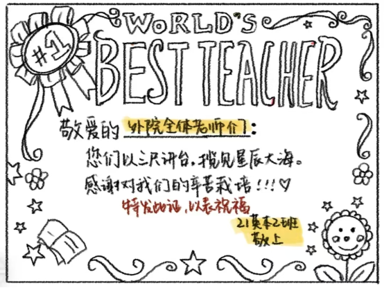 除了献花,学生们还积极参与了为教师写祝贺卡片的活动。每一张卡片都承载着学生们对教师的感激之情和节日的祝福。这些卡片被精心装饰后,由学生代表亲手送到教师手中,让教师们感受到了来自学生的温暖和尊重。