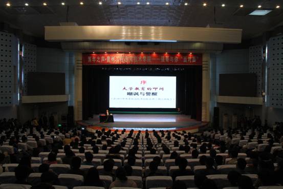 3月29日下午,国家教育部“长江学者奖励计划”特聘教授、国家杰出青年科学基金获得者、“新世纪百千万人才工程”国家级人选、享受政府特殊津贴专家,浙江省第九届、十届政协委员,曾任浙江大学材料与化学工程学院副院长、教授、博士生导师,现任贵州大学校长,贵州大学党委常委、副书记,博士,教授,博士生导师郑强应邀到贵工程秋逸音乐厅作了题为《中国梦中华复兴之梦——当代中国教育与国人的价值取向》的讲座。我校院长陶文亮、党委副书记汤宇华、副院长向贤礼、副院长卢凤鹏出席了讲座,全校师生1000余人聆听了讲座,全场座无虚席。