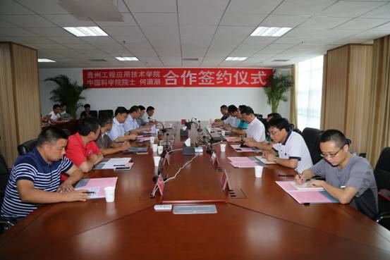 7月18日下午,贵州工程应用技术学院与中国科学院院士何满潮合作签约仪式在西区综合楼802室举行。