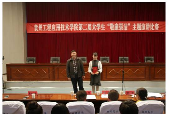 为在我校大学生中普及廉洁知识,营造“崇洁尚廉”的良好氛围,进一步提升大学生廉洁意识,5月5日下午,我校纪委监察室联合学生工作处、毕节市廉政研究中心在身修讲堂举办贵工程第二届大学生“敬廉崇洁”主题演讲比赛, 校党委委员、纪委书记索绍新亲临比赛现场,300多名师生员工观看了比赛。