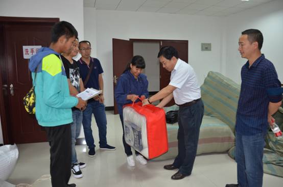 党委副书记代表学校给家庭经济困难学生赠送被褥