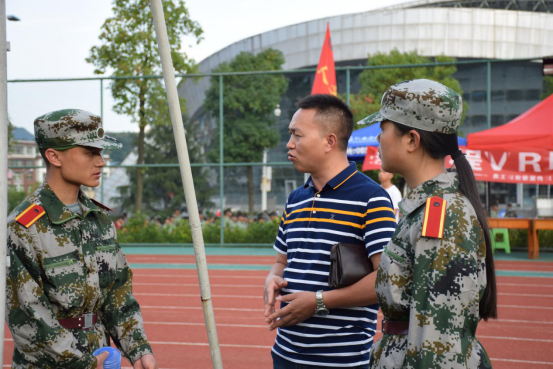 在军训的第一天,军训场上除了一排排“绿色”的风景线,还有一道由学校领导、各院老师和志愿者组成的风景线。他们在军训场上用自己的汗水,践行了以生为本、为生服务的教育理念,我们相信在这一道亮丽风景线的有力保障之下,同学们将能更好地投入到军训中,以更加优异的成绩完成大学第一课。