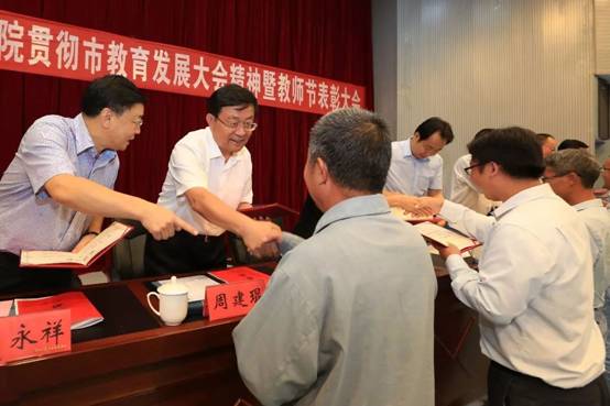 在贵州工程应用技术学院贯彻全市教育发展大会精神暨教师节表彰大会上,周建琨代表市委、市政府向该校全体教育工作者致以节日问候,并对获得表彰的校级优秀教师和优秀教育工作者、省级教学竞赛获奖教师及指导团队表示祝贺。