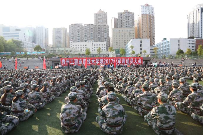 9月8日下午,贵州工程应用技术学院2017级新生军训动员大会在绣山田径场举行。校党委副书记汤宇华出席大会,各相关职能部门主要负责人、辅导员、承担军训工作任务的武警官兵和学生军训教官团以及2017级全体新生参加动员大会。