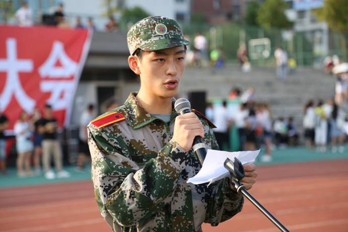 大会上,军训团团长唐文海,人文学院广播电视专业新生代表吴建分别发言并表态,表示此次军训将充分发扬吃苦耐劳的精神和一切行动听从指挥的态度,圆满完成本次军训任务。
