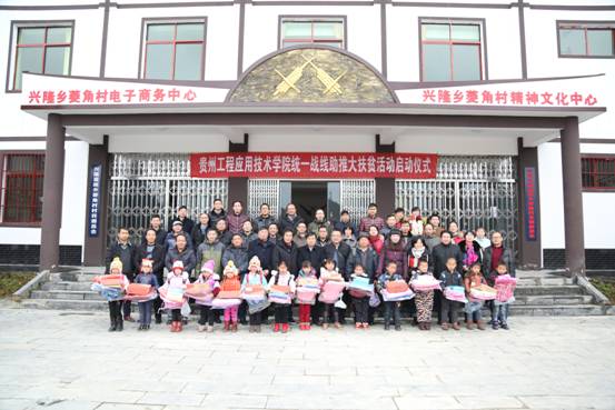 1月9日,“贵工程统一战线助推大扶贫活动启动仪式”在大方县兴隆乡菱角村举行。贵工程党委副书记汤宇华出席启动仪式,大方县兴隆乡人大主席王正尧、组织委员陈彬、副乡长杨桓仁,贵工程党委统战部、组织部,贵工程7个民主党派基层组织、无党派知识分子联谊会、中华职教社工委代表,贵工程驻村工作队相关人员,兴隆乡青杠村、菱角村、石板村相关村干部、村民代表、小学生代表参加启动仪式,启动仪式由学校党委统战部部长夏鲲主持。