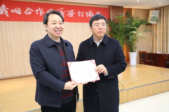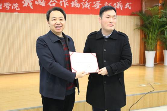 会上,胡敬斌与李奇勇签订校地战略合作框架合作协议,李奇勇同志为胡敬斌、刘鑫、王艳(毕节添钰动力科技股份有限公司技术总监)、王振权等四名学校聘任的博士颁发聘任证书。